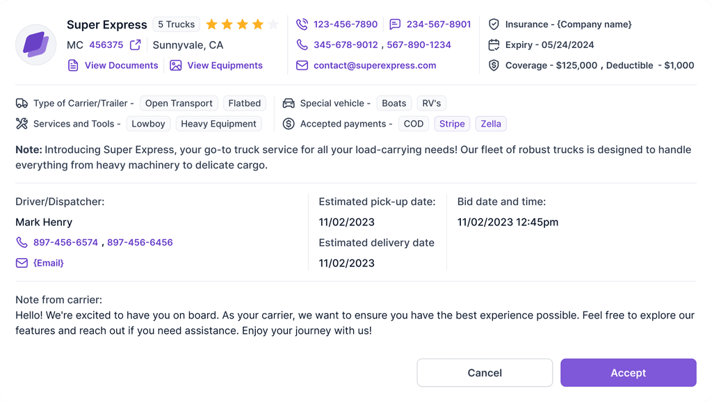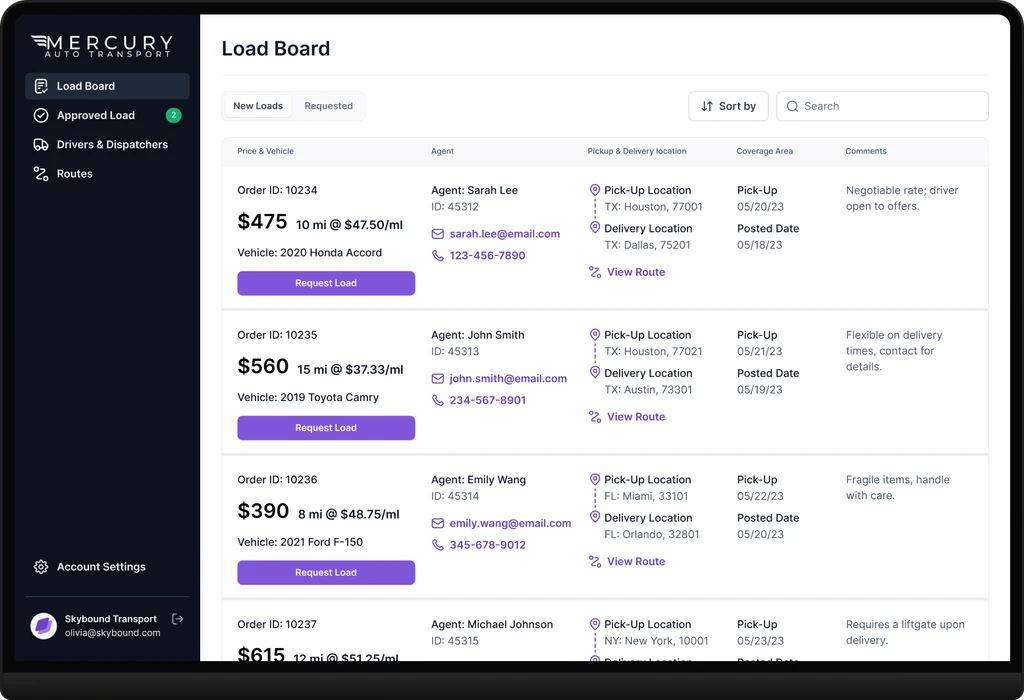 Built a dashboard that replaces constant phone calls with structured carrier bidding.