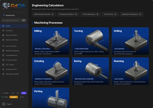 Created a tool with 30+ machining calculators to replace scattered engineering references.