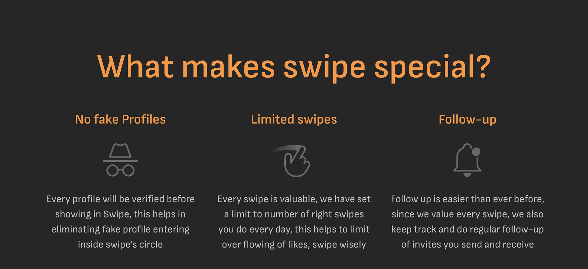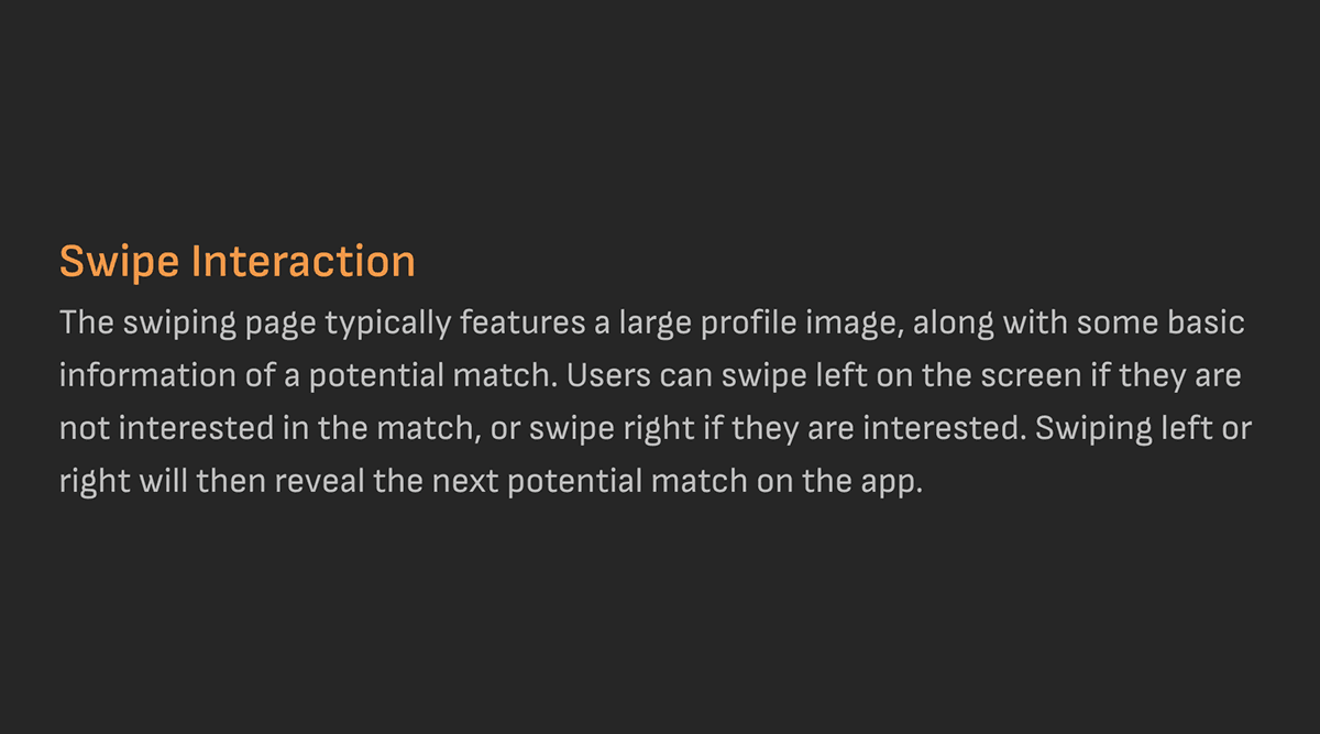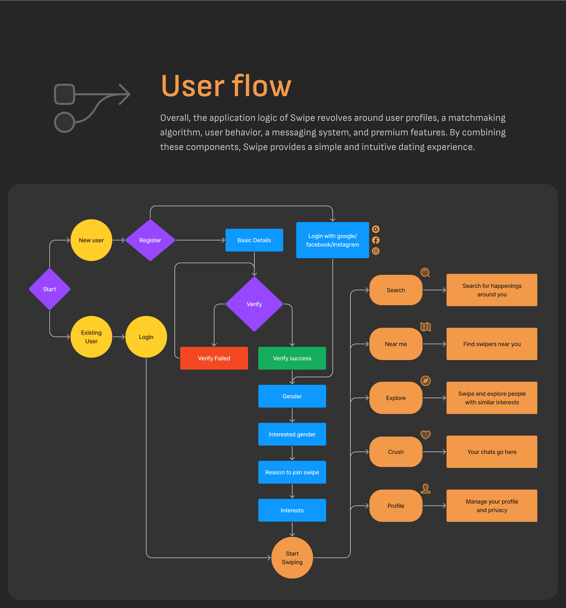 Swipe is a dating app designed to provide user with a simple and enjoyable experience. The app is built on the concept of swiping left or right on potential matches, with a focus on creating meaningful connections.