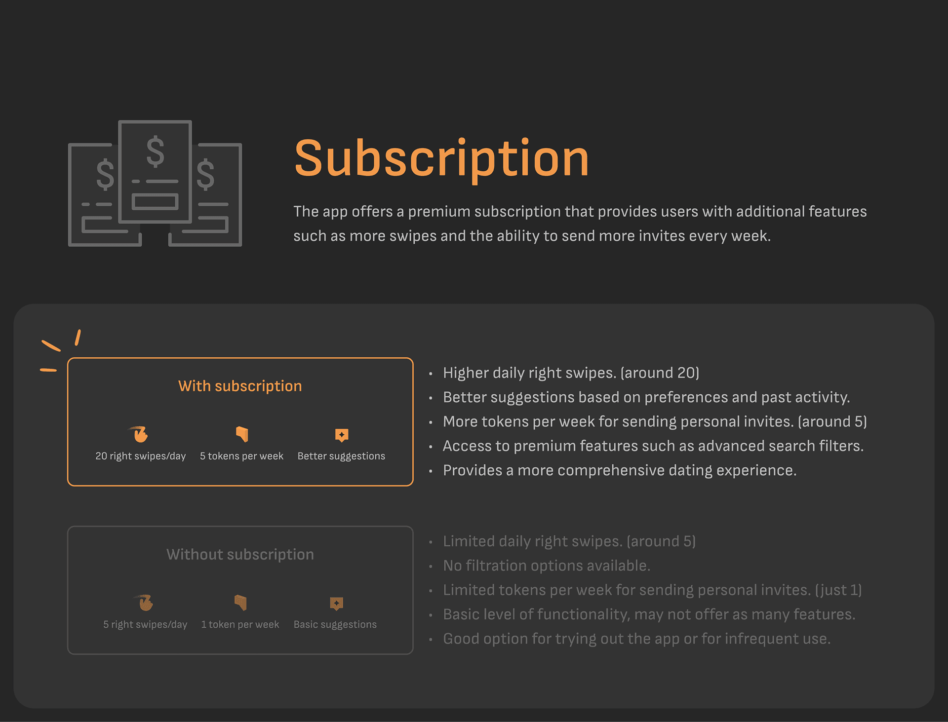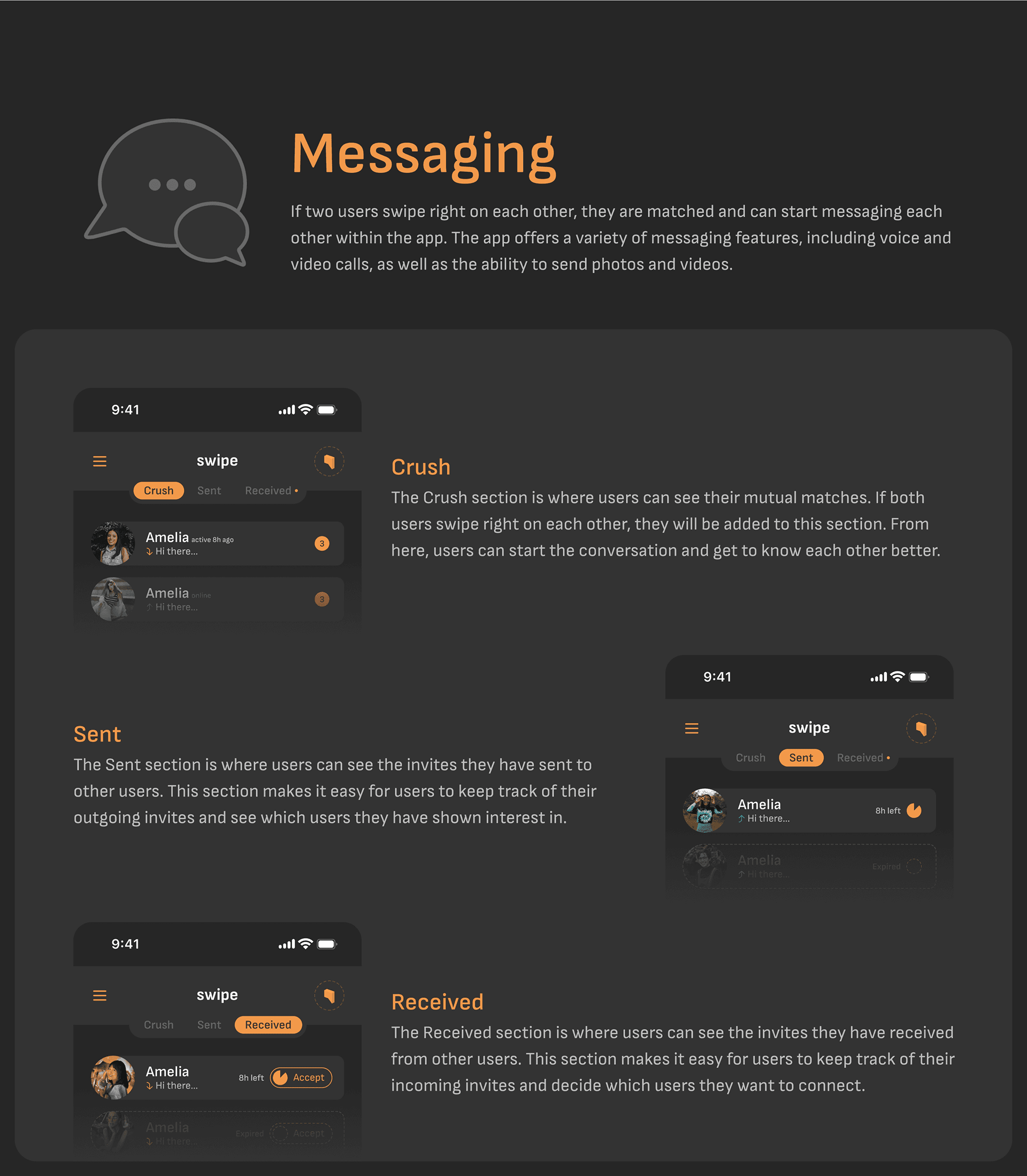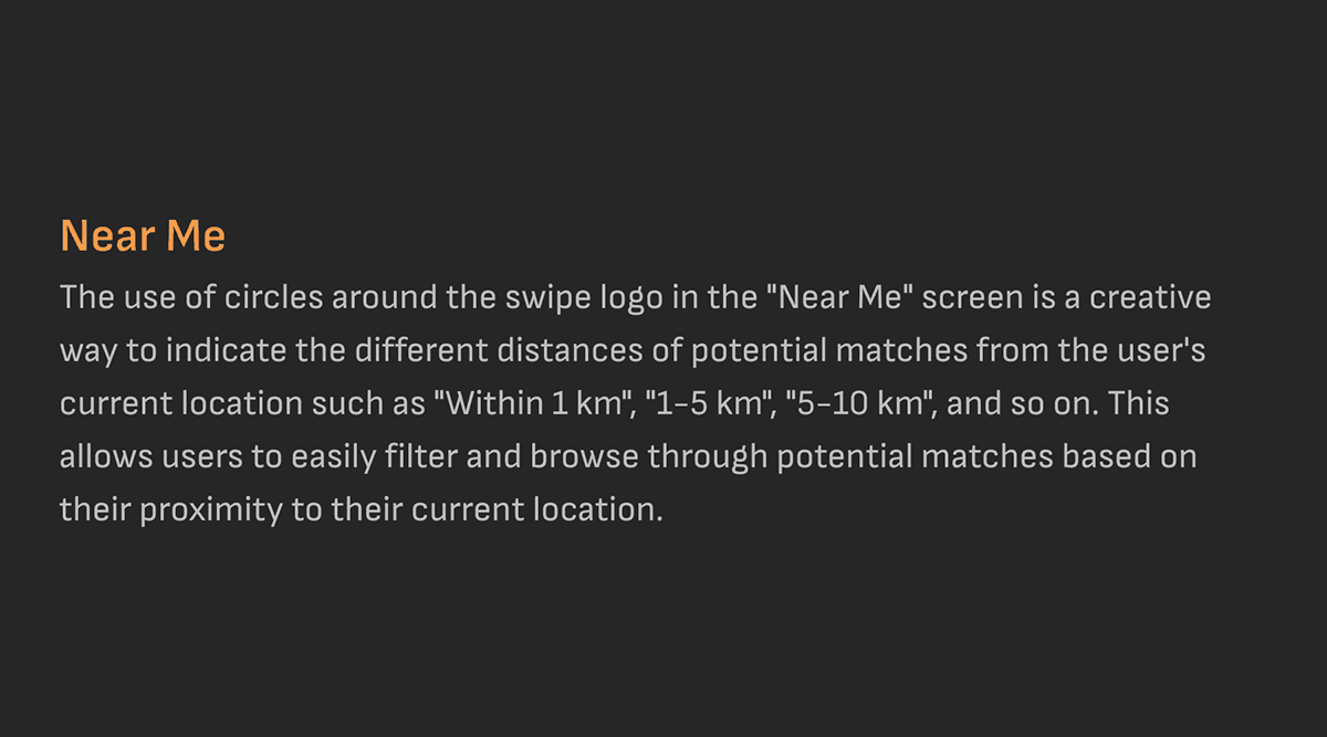 Swipe is a dating app designed to provide user with a simple and enjoyable experience. The app is built on the concept of swiping left or right on potential matches, with a focus on creating meaningful connections.