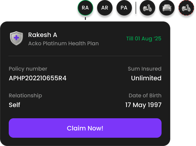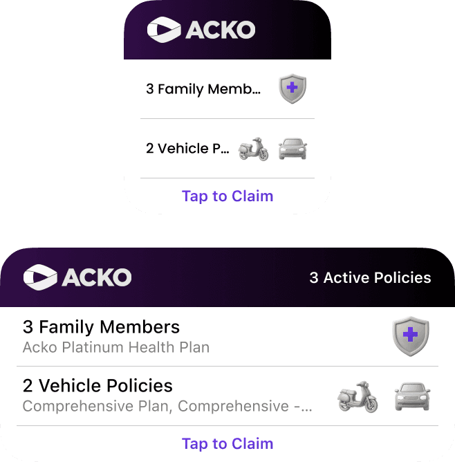 Quick Glance Policy Overview: Provides users with a compact summary of all active policies (health and vehicle) without needing to open the app fully - reducing friction and boosting user convenience.
