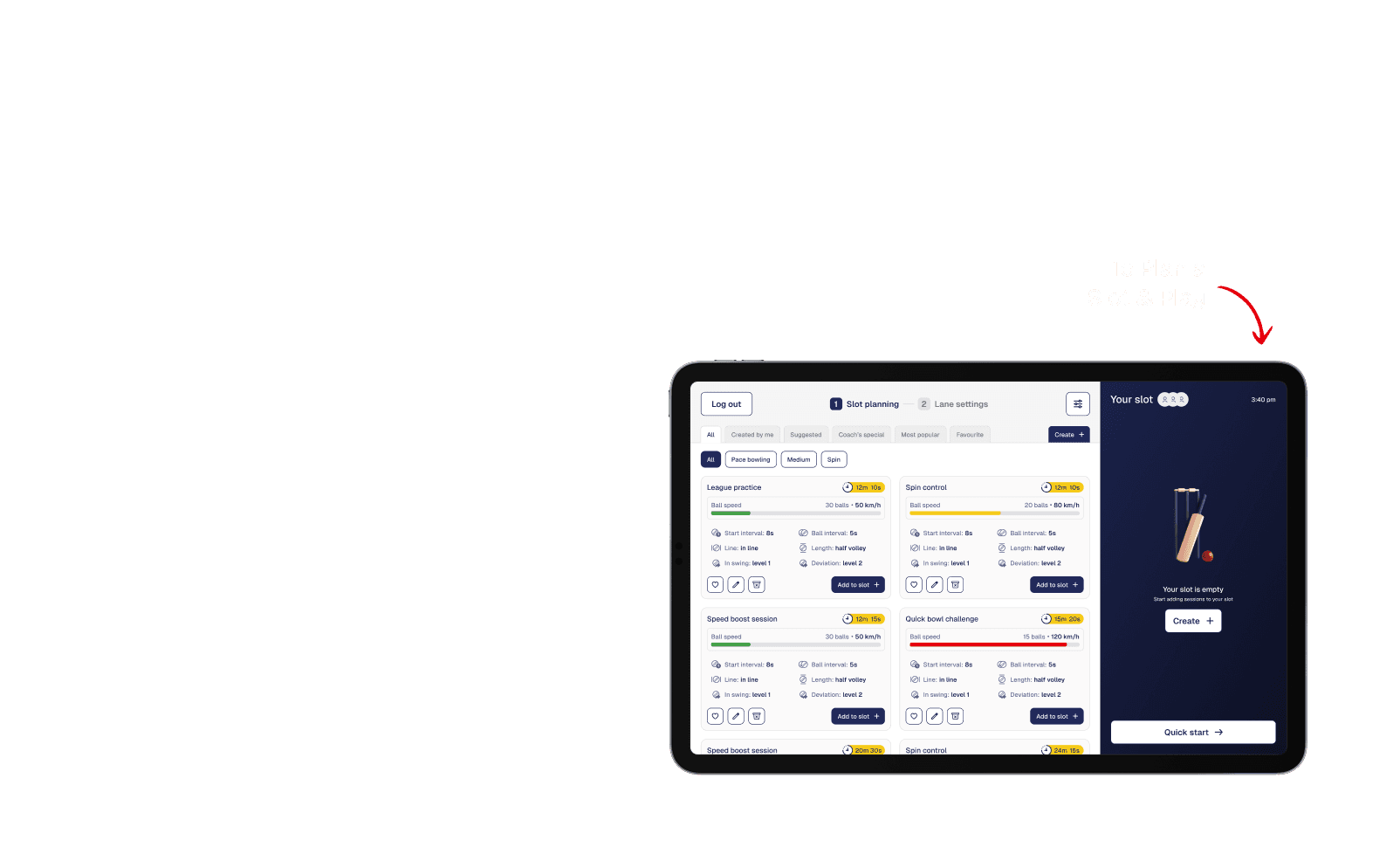 Quick Start: Acts as the in-lane control interface, allowing players to start quickly or build custom sessions within their booked slot.