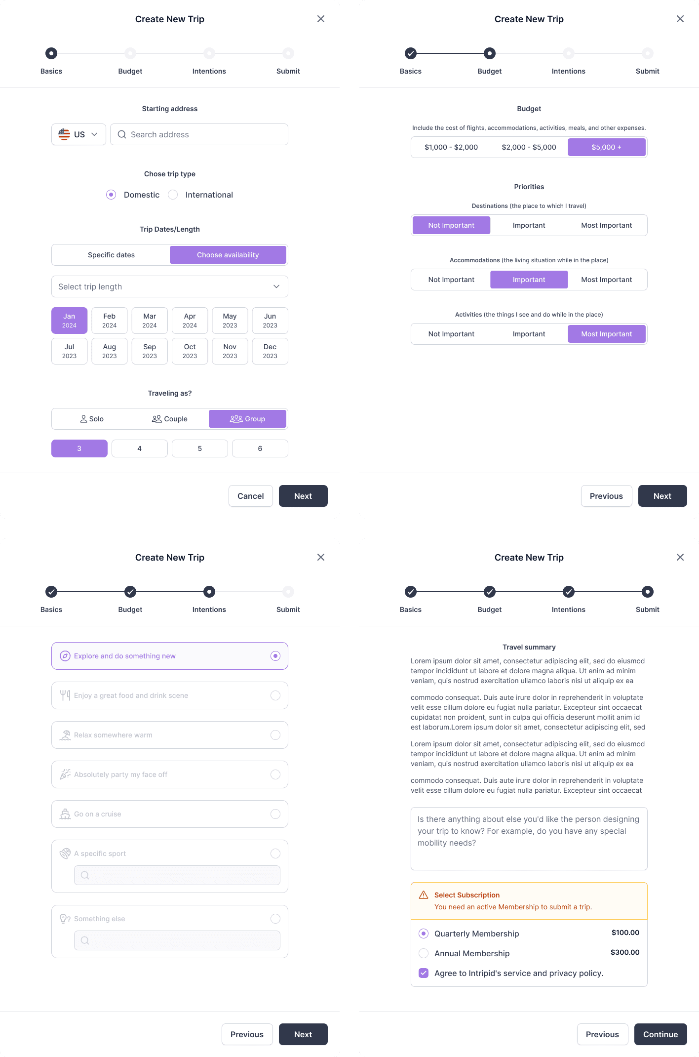 Submit: Finally the submit step will show the travel summary and options to select the membership.