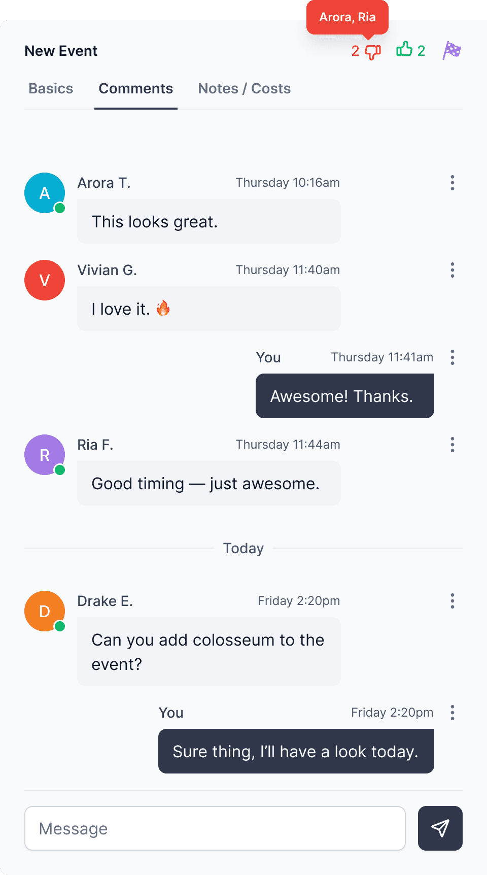 Group Decision-Making Issues: There was no easy way for travelers to vote or give feedback on proposed events, making it hard to collaborate on plans.